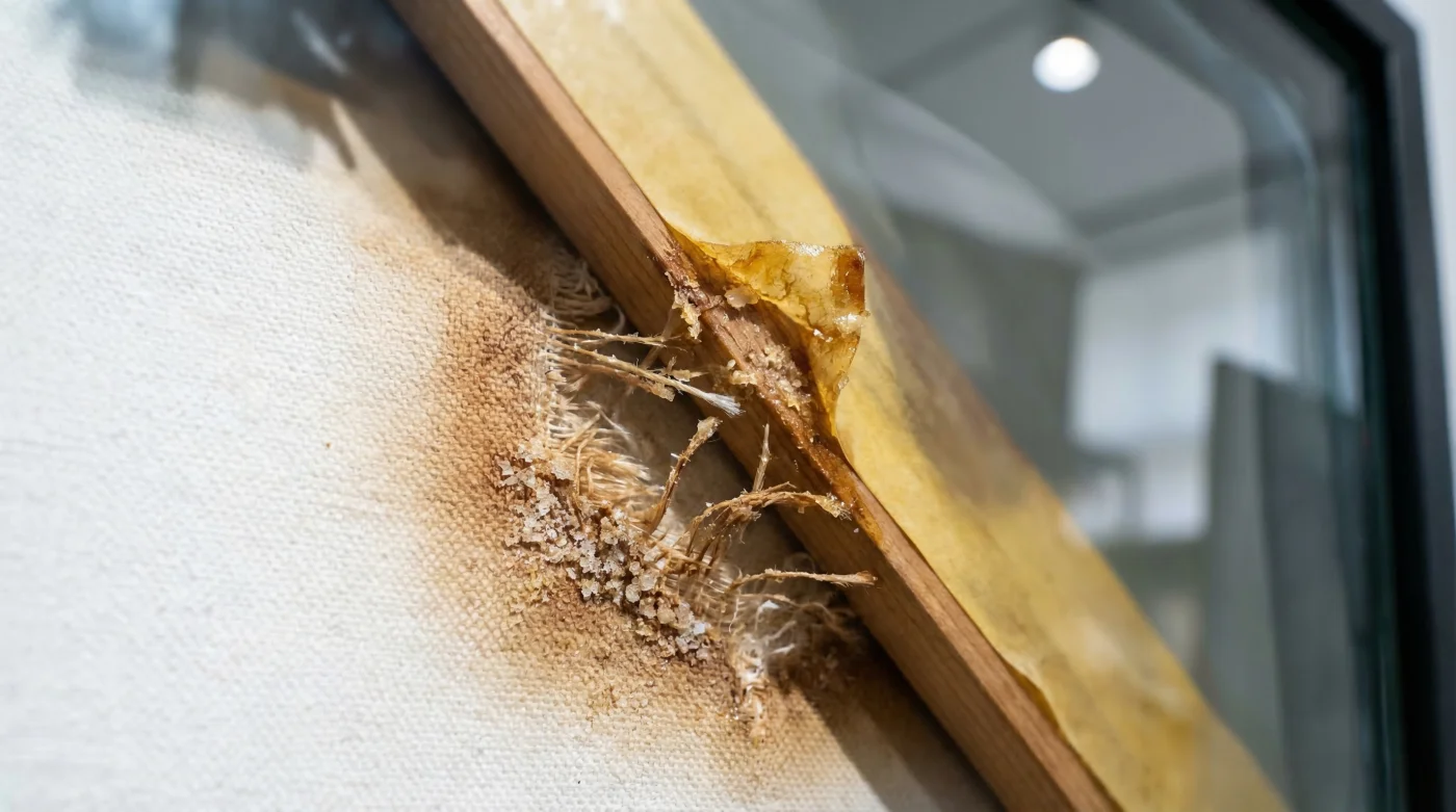 Identificare i danni causati dal nastro biadesivo nelle primissime fasi può letteralmente fare la differenza tra un salvataggio conservativo riuscito e una perdita economica e affettiva totale. I restauratori professionisti utilizzano una precisa e rigorosa lista diagnostica, spesso supportata da luci radenti e lampade di Wood, per valutare lo stato di salute di un’opera montata scorrettamente. Ecco i principali segnali clinici a cui devi assolutamente prestare attenzione se possiedi arte incorniciata in casa:
