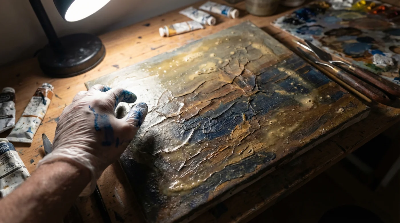Hai investito settimane, forse mesi, per perfezionare ogni singola velatura del tuo dipinto ad olio. L’opera è apparentemente asciutta al tatto, il colore sembra stabile sulla tela e decidi con entusiasmo che è finalmente giunto il momento di sigillare il tuo duro lavoro per donargli quella lucentezza vibrante e omogenea, tipica delle grandi gallerie d’arte. Ma settimane o mesi dopo, un’ispezione ravvicinata rivela un incubo inaspettato: una fitta rete di crepe profonde e inestetiche sta letteralmente squarciando la superficie pittorica, minacciando di distruggere per sempre la tua creazione artistica e vanificando innumerevoli ore di dedizione e fatica.